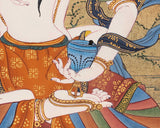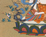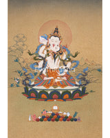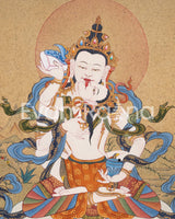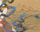 Experience the divine energy of Vajrasattva with our beautifully crafted thangka, depicting the deity with consort. Invoke purification and gain inner peace with this powerful visual aid. Perfect for meditation and spiritual practice.