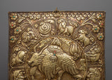 We are pleased to present our Yak Metal Wall Hanging Thanka, a captivating combination of handcrafted skill and cultural history. A harmonious scene of ancient symbolism and artistic refinement is created by the beautifully sculpted Zodiac signs surrounding the majestic Yak at the center of this exquisite sculpture.