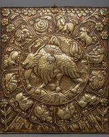 Yak Metal Wall Hanging Thanka Featuring Zodiac Sign Calendar for Spiritual Insight and Decorative Elegance