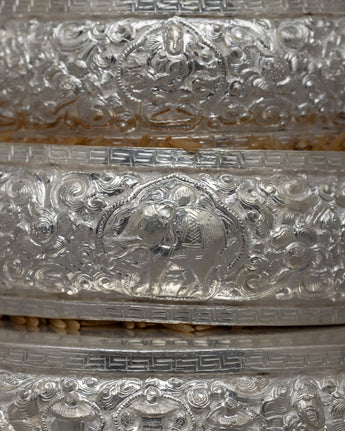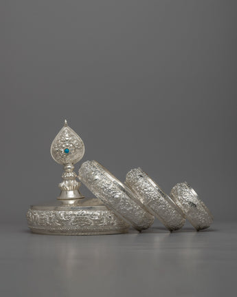 Immerse yourself in the tranquility of our Zen Mandala Set, delicately carved on pure silver bodies to evoke serenity and balance. Each piece in this collection embodies the spirit of mindfulness and meditation, urging you to discover your inner self through contemplation and reflection. At 0.74 kg, these mandalas are not only beautifully constructed but also hefty enough to function as effective aids for spiritual meditation.