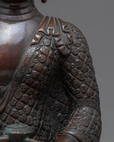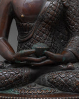 The hand-carved Amitabh Buddha Statue holds an eternal Life Nectar Vase. The Infinite Life Buddha's serene visage in the statue is seated in a vajra stance on a lotus seat. We have used a body made of pure oxidized copper and acrylic paint to give the statue a beautiful look.