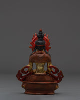 This Peaceful Amitayus Statue measures 5.9” (15cm) in height and 4.5” (11.5cm) at the base, weighing 0.51 kg. Crafted from a copper body and beautifully adorned with 24K gold gilding, gold, and acrylic paintings, this statue exemplifies the skilled artistry of Nepal. Its serene presence and compact size make it perfect for altars, meditation spaces, or as a spiritual decor piece.