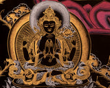 Traditional Tibetan painting techniques were used to create our thangka. It is a distinctive piece made with real 24K gold and colors from natural stones.