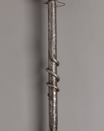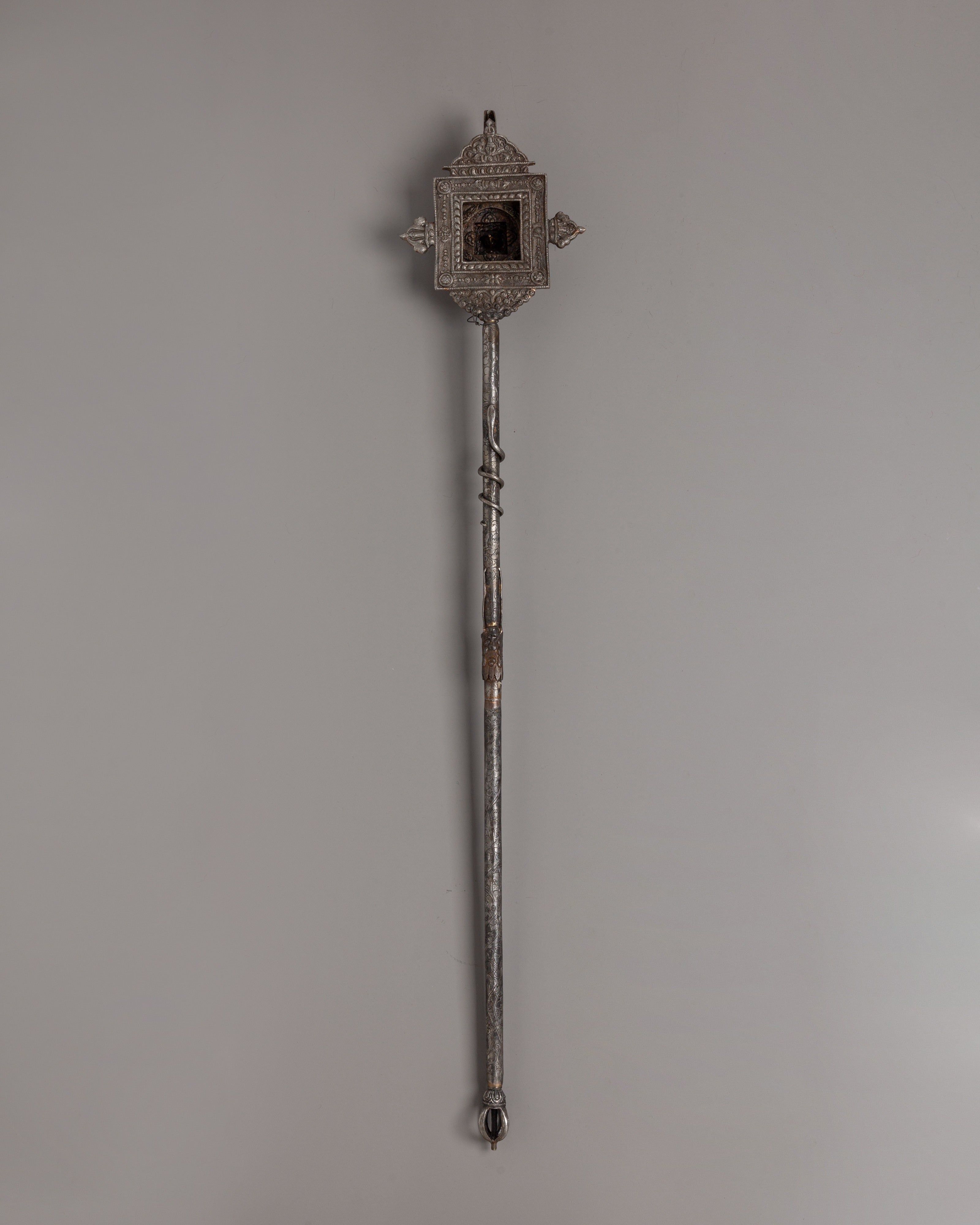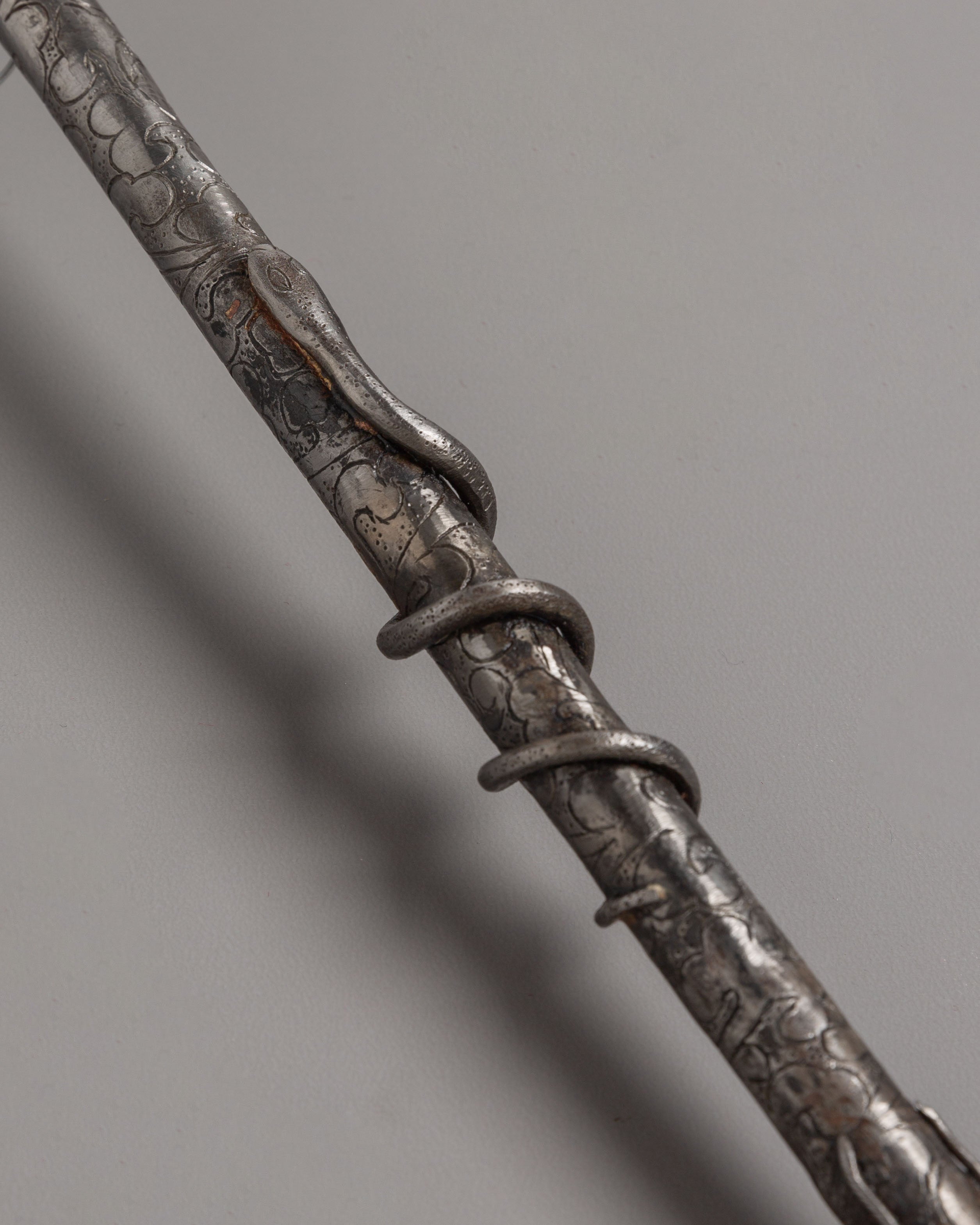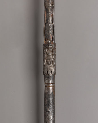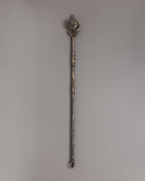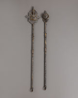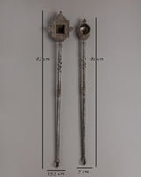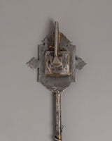 This Buddhist Gangsa & Ganglus Set is a stunning example of Tibetan artistry and spiritual dedication, manufactured of iron to produce powerful ritual tones. The Gangsa is 81cm tall and 7cm wide, while the Ganglus is slightly larger at 87cm tall and 15.5cm wide, weighing a total of 1.05 kg. These ritual instruments are typically crafted by experienced Himalayan artisans who uphold ancient Buddhist symbolism and ceremonial design. The weight and structure of the iron increase the resonance and depth of each note, producing a sound that fills temple halls and meditation areas with peace and reverence. Each item has a unique patina that reflects both its ritual origins and the devotion behind its manufacture.