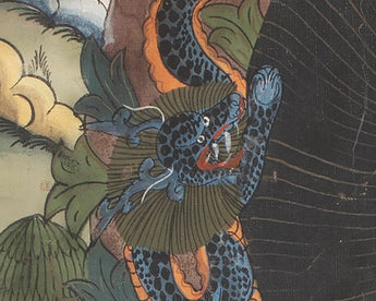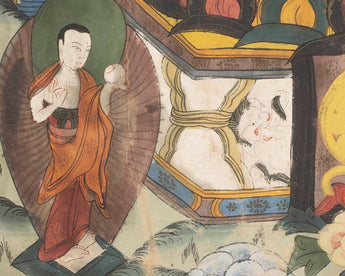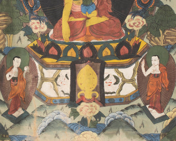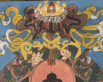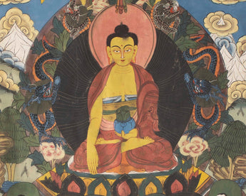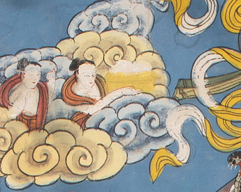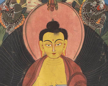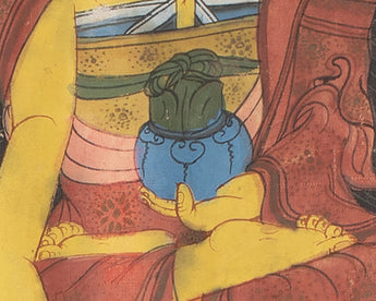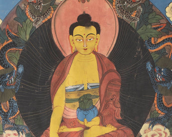 Our thangka is a handpainted Tibetan art done using traditional methods. It is a unique piece created using genuine 24K gold and natural stone colors.
