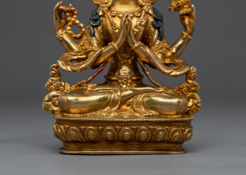 Chenrezig, also called Avalokiteshvara, holds a cherished place in Mahayana and Vajrayana Buddhism as the embodiment of Buddha’s boundless compassion. This bodhisattva dedicates himself to helping all beings find enlightenment and freedom from suffering. Often depicted with four arms, Chenrezig symbolizes his remarkable power to aid many souls simultaneously. His compassionate presence and role as a spiritual guide make him a beloved figure in Tibetan Buddhism and beyond, inspiring devotion and hope on the path to awakening.