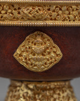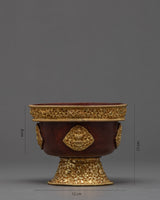 This Offering Bowl is an entirely hand-carved item; made of copper alloy which has fine hand carvings of Buddhist symbols of prosperity and is submitted to a gold plating effect with a raised stand. Otherwise called Yonhap in Tibetan, this water offering is made in a set of seven bowls. Practitioners follow this custom of seven bowl contributions early mornings and eliminate them toward the finish of every prior day at nightfall.