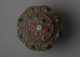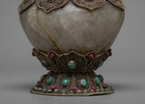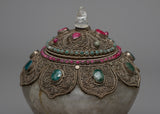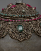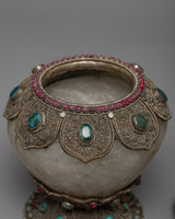 Crystal Bowl | Old Tibetan Filigree Carving Gemstones Inlay | Home Decors