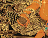 -Rotate thangkas between display and storage on a regular basis, two to four times a year, to reduce the amount of exposure to light. Keep away from sunlight and humidity.