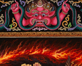 A thangka is a very vulnerable object due to the materials used to make them. There are various things a thangka should be prevented from; they are listed below: