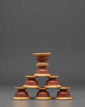 This set of offering bowls is ideal for Buddhist rituals, meditation practices, or as meaningful spiritual decor in homes and temples. Their balanced design and luminous finish invite positive energy, harmony, and spiritual growth. The Tibetan Gold Plated Offering Bowls embody the heart of devotion and the art of sacred offering.