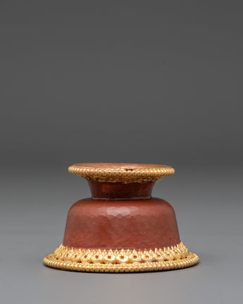 Each bowl is skillfully handcrafted from copper, then gold-plated and adorned with vibrant acrylic color detailing that enhances its spiritual beauty. The artisans of the Himalayas pour devotion into every piece, ensuring perfect symmetry and a smooth finish. The blend of gold and color symbolizes divine energy and compassion, transforming your altar into a serene sanctuary of prayer and reflection.