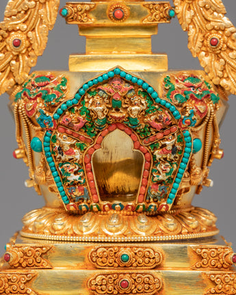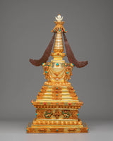 Golden Copper Tibetan Stupa | Sacred Buddhist Shrine Decor