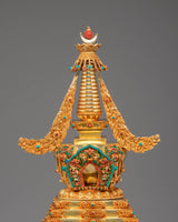 Handmade Golden Copper Tibetan Stupa for Meditation