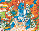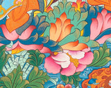 Our thangka is a classical and stylized form of Nepalese and Tibetan painting. The art is explicitly religious, all symbols and allusions must be in accordance with strict guidelines laid out in Buddhist scripture. It is painted with the use of gold and other various natural colors.