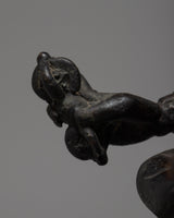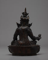 In traditional style, we offer an artistically hand-crafted sculpture of Guru Rinpoche or Guru Padmasambhava in an oxidized copper body. This Tibetan statue may be used in a variety of Buddhist rites or celebrations, as well as for ordinary meditation.