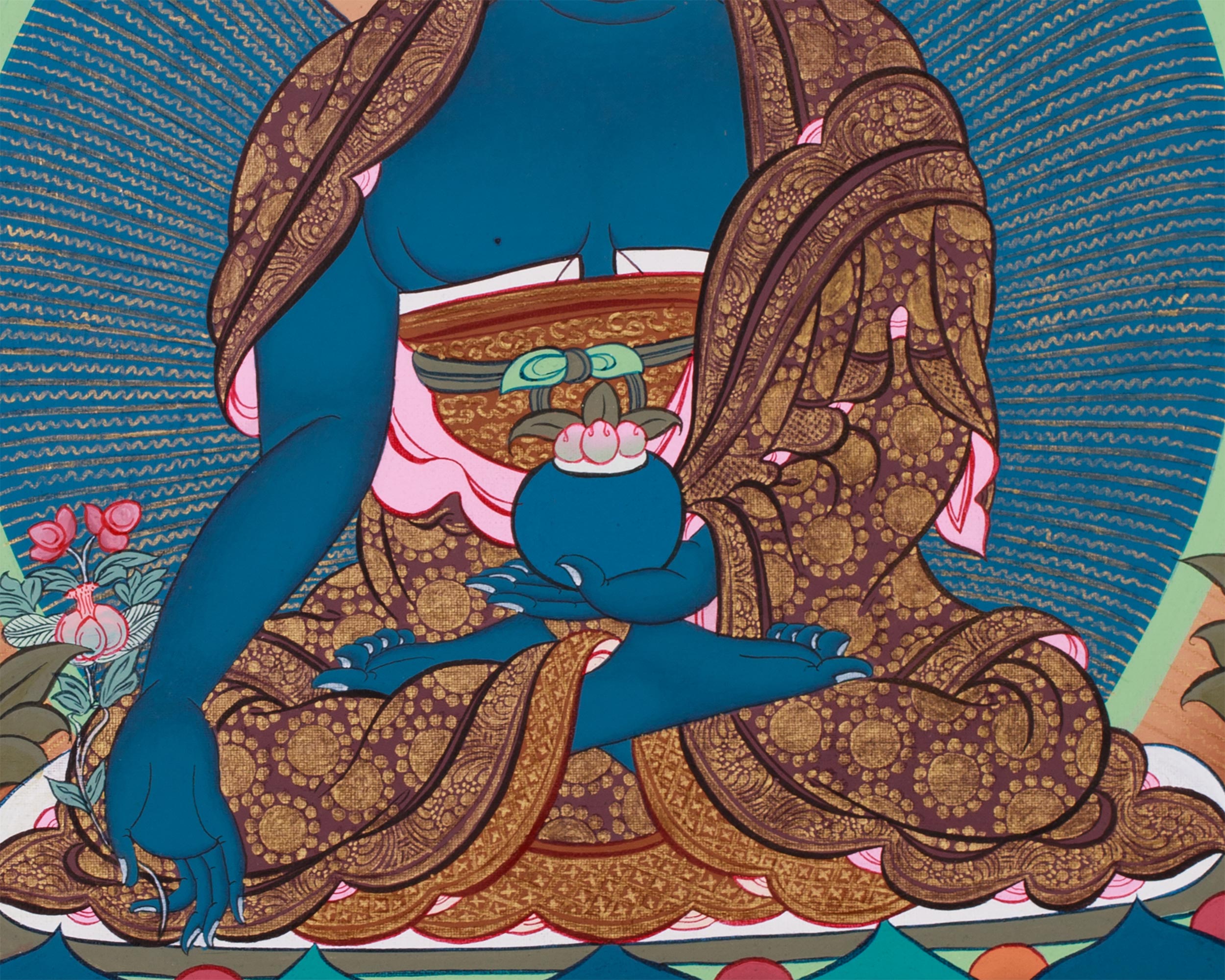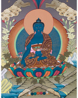 Thangka of Blue Buddha, Bhaisajyaguru | Medicine Buddha | Protector of Health and Wellness