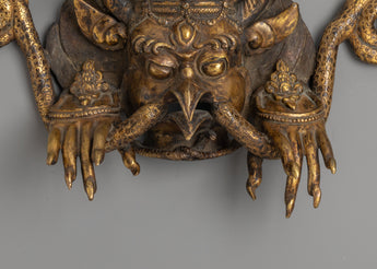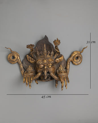 This Handmade Buddhist Deity Garuda Wall Hanging is a stunning example of Himalayan artistry, representing divine protection, strength, and enlightenment. This brass wall décor depicts Garuda, the renowned bird deity and protector from Tibetan and Hindu mythology. Garuda, the perpetual nemesis of serpents and the bearer of Lord Vishnu, represents fearlessness and the triumph of wisdom over darkness. This sculpture exudes strong spiritual energy, making it an ideal complement to any Buddhist altar or home sanctuary.