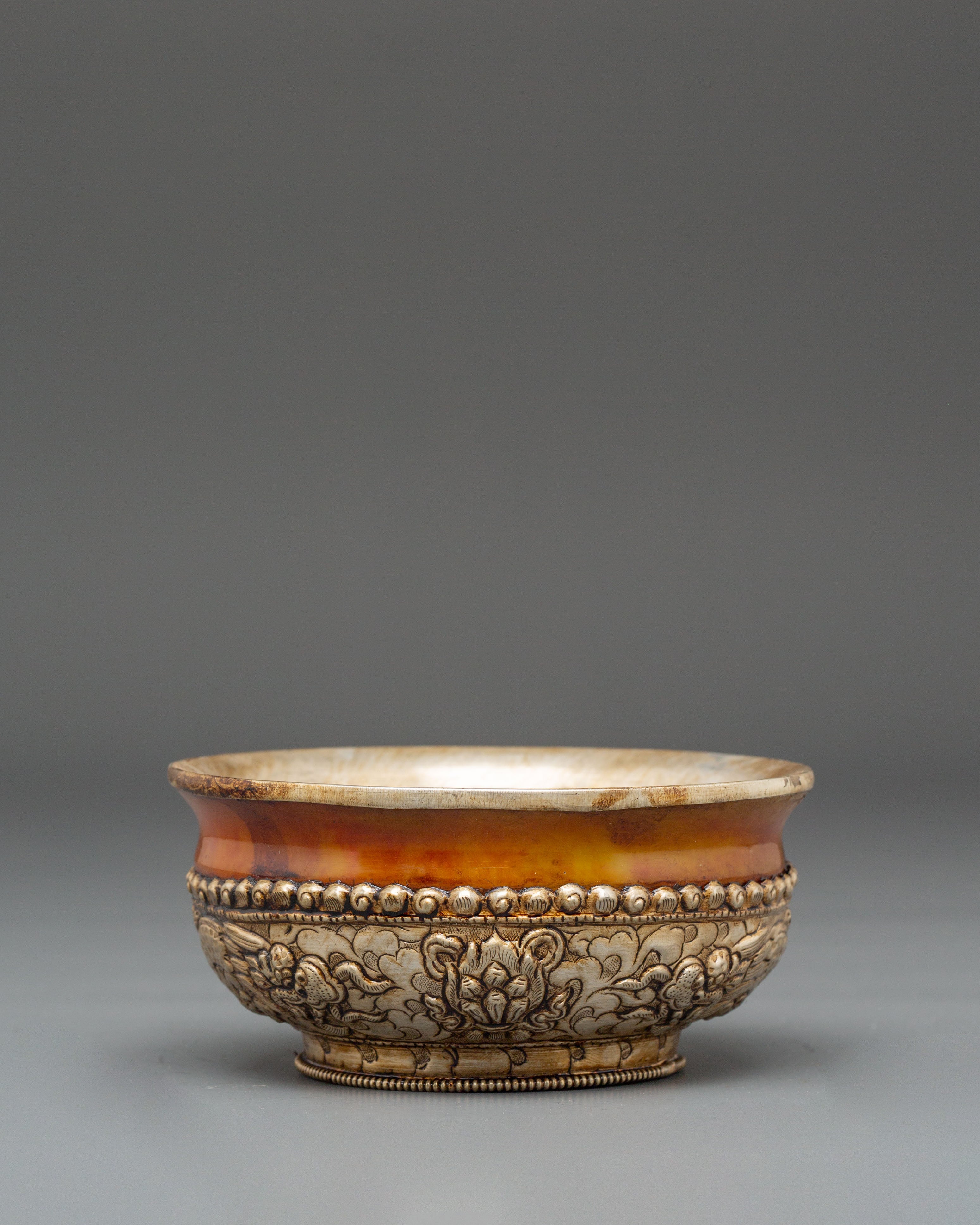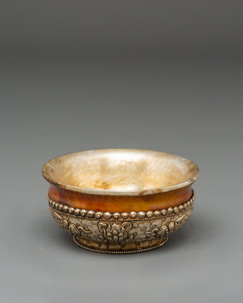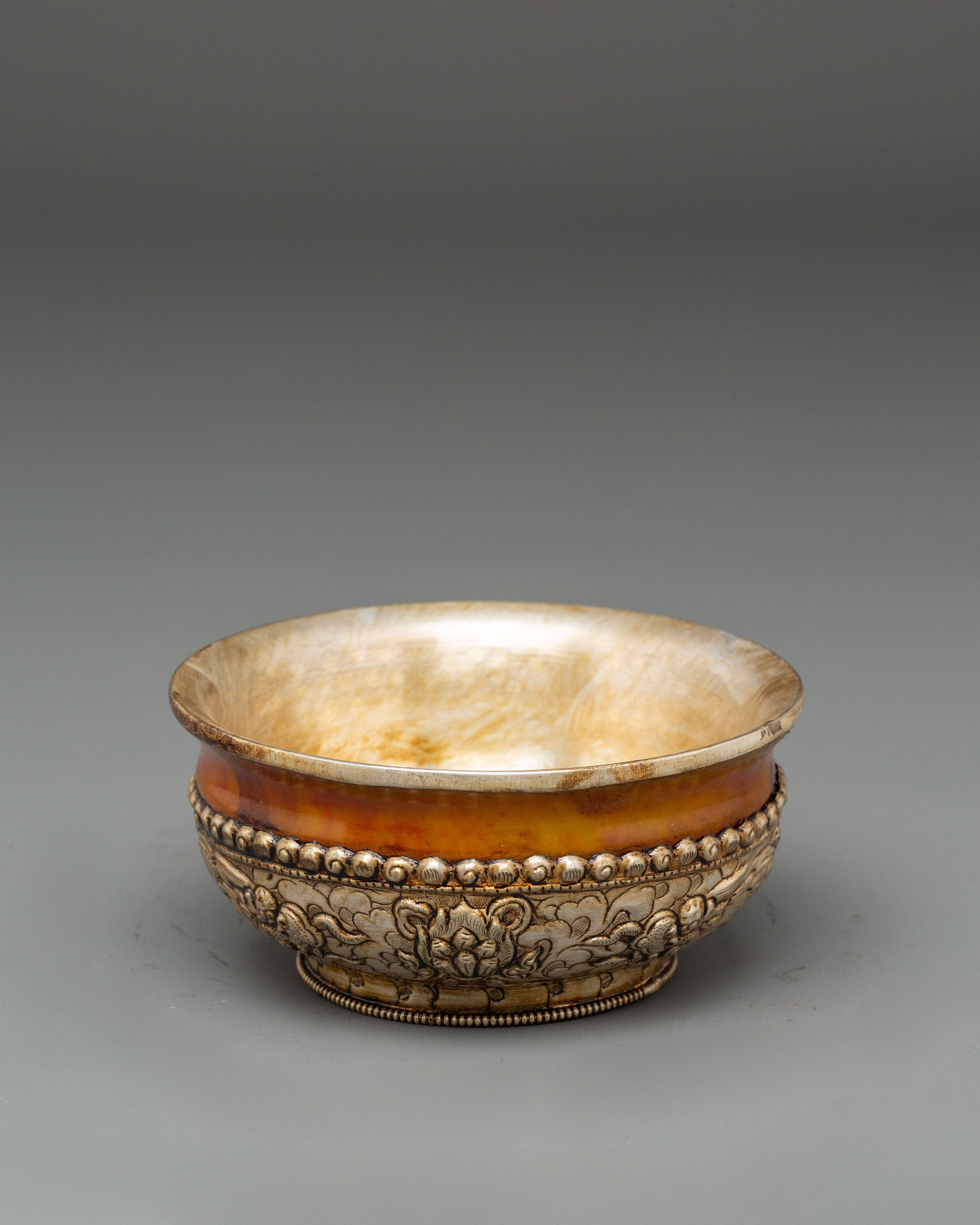 Handmade Offering Bowl for Ceremonies | Amber and White Metal Ritual Bow