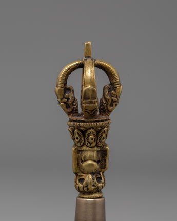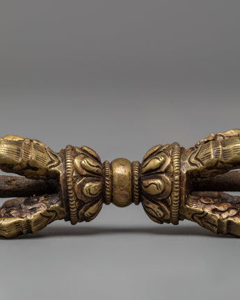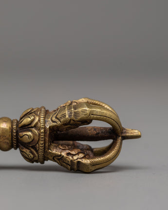 The Ghanta has exquisite carvings around the handle that show deities and sacred patterns that represent divine energy and awareness. When rung, the smooth brass body generates a resonant, relaxing sound that is thought to remove negative energy and bring spiritual clarity. The Vajra, on the other hand, represents indestructible strength and stability. Its symmetrical design with five prongs symbolizes the transformation of five negative emotions into five transcendent wisdoms, which is a central precept of Buddhist philosophy.