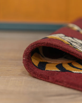 The Handwoven Meditation Rug is a remarkable piece of craftsmanship created with precision and care using a traditional 100-knot weaving technique. Made from wool, it offers texture, warmth, and a connection to traditional artistry. Measuring 70 cm in height, 156 cm in width, and weighing 2.98 kg, this rug is crafted to create a serene and balanced space. Its deep red base and expressive tiger motif symbolize strength, grounding, and clarity—making it ideal for meditation, mindfulness, and artistic interiors.