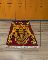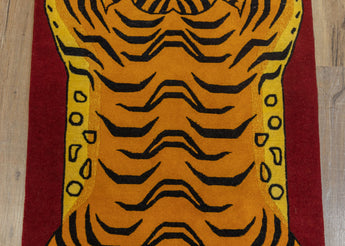 Handmade Wool Tiger Rug | Unique Animal Motif Tibetan Carpet
