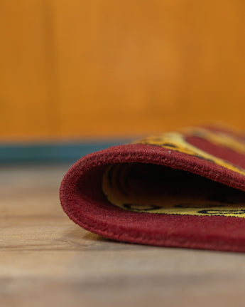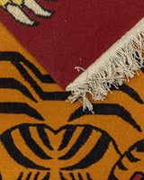 The Handwoven Tiger Rug reflects the dedication and craftsmanship of skilled weavers who use a 100-knot carpet technique to create an expressive textile work. Made from wool with rich texture and depth, this rug combines bold artistry with cultural storytelling. Measuring 70 cm in height, 156 cm in width, and weighing 2.98 kg, it features an 11 mm thickness for a soft, comfortable feel. The deep red field highlights the vivid tiger motif, a striking centerpiece that draws the eye in any setting.