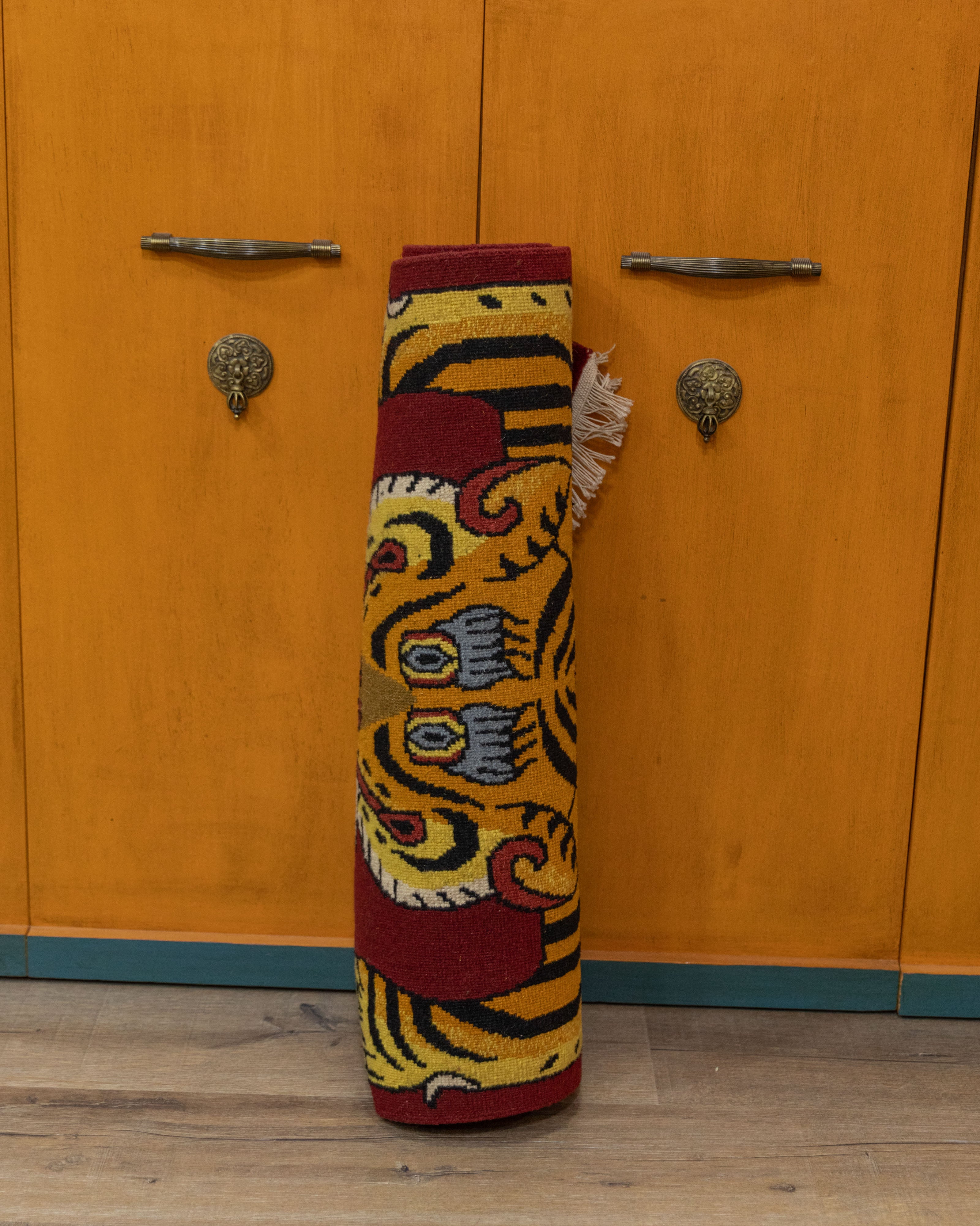 Discover the beauty of this handwoven tiger rug, a fusion of craftsmanship and cultural depth. Ideal for boho home decor, art-filled living spaces, and Tibetan-inspired interiors, it adds an expressive touch to any environment. Whether styled as a handmade wool rug, an animal motif carpet, or Tibetan tiger artwork, this rug embodies the essence of creativity and cultural significance while enhancing your space with authenticity and artistic presence, drawing on the spirit of the handwoven tiger rug.