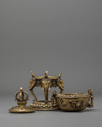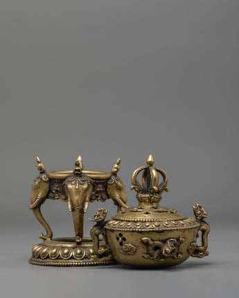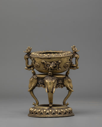Incense Burner with Stand for Practice | Brass Burner with Elephant Base