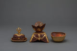 Gold Plated Kapala Skull Cup Set | Tibetan Ritual Offering for Ancient Practices | Buddhist Ceremonial Skull Cup