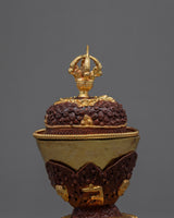 The skull cup, known as Kapala, is fashioned from the oval upper section of a human cranium that serves as a libation vessel for many Vajrayana deities, primarily wrathful.