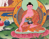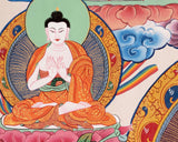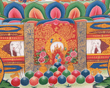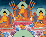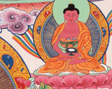 Medicine Buddha is highly practiced among the Himalayan Tibetan Buddhist community. This Buddha thangka is done in the traditional Menri style, a major Lhasa, Central Tibet painting style.