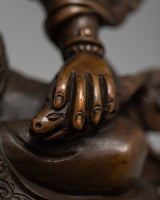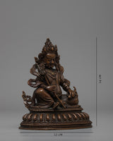 Namtoshe or Vaishravana, the Lord of Wealth, is the Buddhist equivalent of Kubera, the Brahmanical deity of wealth. He also rules over the realm of riches. He is depicted seated on a lotus seat. He has two hands, one holding a lemon and the other holding a jewel-spitting mongoose, establishing him as the wealth deity.