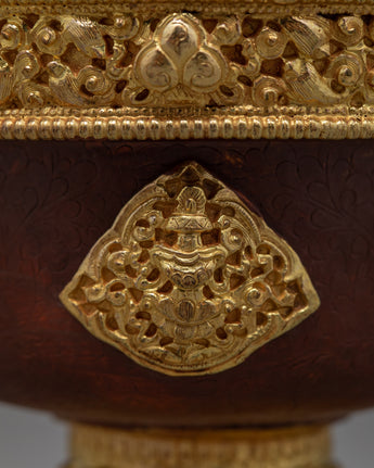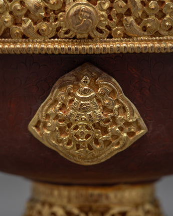 Yonchap or Tibetan Offering Bowls, these bowls represent the craftsmanship of the primitive artisans of city of Patan, Nepal. Decorated with the Eight Auspicious Buddhist Symbols, it is the most common form of offering in Tibetan Buddhist shrines, also known as "Yongchap" or "Tin" in Tibetan, and is made up of seven bowls.