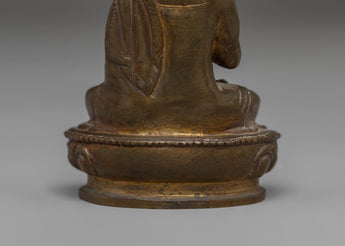 The statue captures Vairocana seated in meditation, exuding calmness, enlightenment, and universal peace. His posture and facial expression convey the deep meditation and wisdom that this Buddha embodies. The intricate detailing, from his robes to the lotus throne, reflects traditional Tibetan artistic elements and the Buddhist belief in the unity of mind and body. Vairocana's raised hand in the gesture of teaching symbolizes the sharing of wisdom, making this statue an ideal addition to your spiritual practice or meditation space.