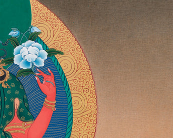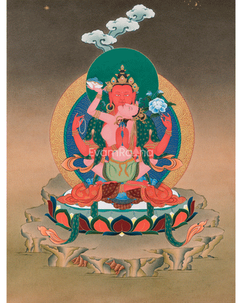 Red Chenrezig, also known as Gyalwa Gyatso, is a powerful manifestation of the Bodhisattva of Compassion Avalokiteshvara, representing a dynamic and active form of compassion. His red color represents the incredible ability of compassion, which can turn negative emotions into wisdom and kindness. Through meditation, rituals, and thangka paintings, practitioners connect with Red Chenrezig to cultivate deep compassion, purify negative karma, and achieve spiritual growth.