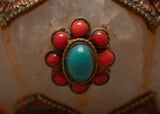 Materials:  Copper Body, Gold Plated, Semiprecious Stone; Turquoise, Coral, Lapis Lazuli