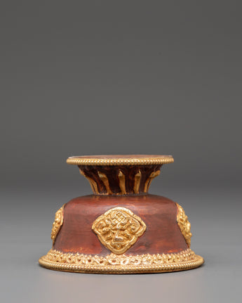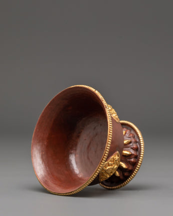 The design of this Spiritual Altar Offering Set reflects the mastery of Tibetan metal craftsmanship. Every bowl features hand-engraved auspicious symbols representing prosperity, protection, and enlightenment — including motifs such as the endless knot and lotus petal borders. The copper base gives it an earthy warmth, while the gold-plated detailing enhances its sacred beauty. The raised pedestal design elevates the offerings in reverence, aligning with traditional altar aesthetics. Whether filled with water, grains, or flowers, these bowls bring an aura of devotion and harmony to any spiritual space.