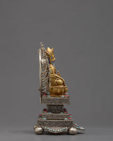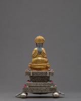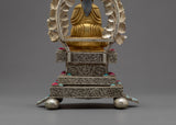Our folding statue display stand or throne is used to place idol sculptures on your Pooja shrine or in your house. It comprises 100% copper with seku workmanship and medium-quality semi-precious stones. This is a present excellent idea for spiritual practitioners and your home altar.