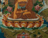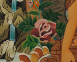 Our thangka is a handpainted Tibetan art done using traditional methods. It is a unique piece created using genuine 24K gold and natural stone colors.