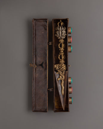Tibetan Ritual Phurba with Box | Handcrafted Buddhist Artifact