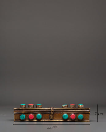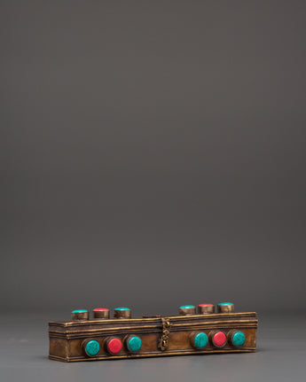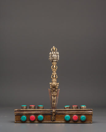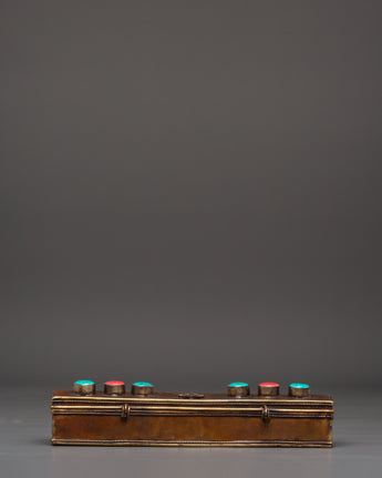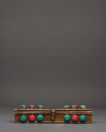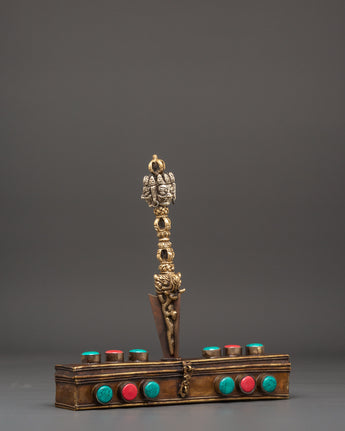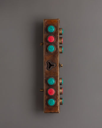 This Tibetan Phurba with Box is a powerful spiritual tool rooted in ancient Himalayan tradition, expertly crafted from brass and copper. Adorned with turquoise and coral stones, it serves as both a sacred ritual dagger and a captivating decorative piece. Perfect for enhancing your meditation space, tantric rituals, or altar, the Phurba is believed to channel protective energy and deepen spiritual practice. Housed in an elegant box, it offers a meaningful symbol of transformation and balance, making it an essential addition to any Buddhist or spiritual setup seeking authenticity and powerful symbolism.