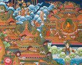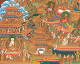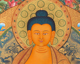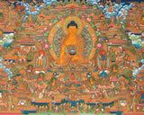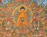 Traditional Shakyamuni Buddha Thangka | Large Traditional Panoramic Wall Art To Aid Meditation Yoga | 24 K Gold Artwork