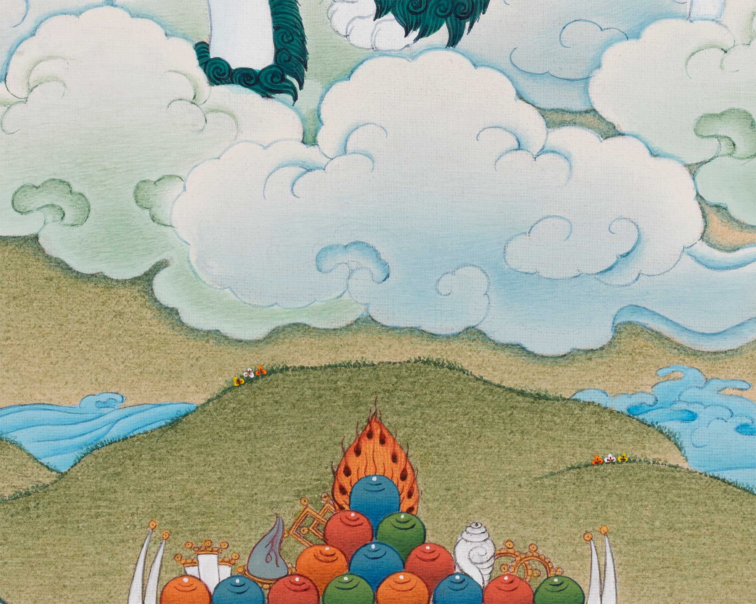 As requested for consecrations/blessings, we can take the thangka to monasteries or the rinpoche from the nearby Boudha Stupa. We kindly ask that you offer $50 to support the monasteries for the blessings/consecration service.
