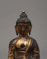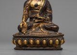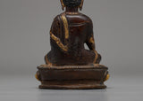 Buddha Shakyamuni statue, seated in vajra posture on a throne with a calm and peaceful face. Shakyamuni Buddha is also known as Gautam Buddha.