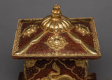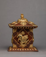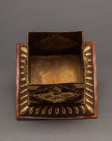 A vintage Treasure Box is a form of a box that is square structured and with a removable lid for storage. It is a beautifully hand-carved box made of copper and plated with pure 24K gold. Each side of the box is carved with meaningful symbols giving it a classic appearance.