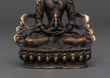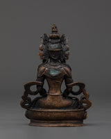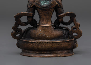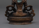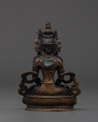This figure has been expertly crafted by skilled artisans, depicting Amitayus' tranquil look and symbolic gestures of longevity, healing, and spiritual enlightenment. The antique finish lends depth and a spiritual sense to this timeless item.