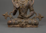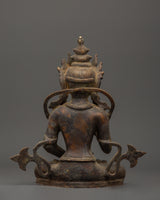 The handcrafted Amoghasiddhi Buddha statue is Made of brass, and this exquisite statue represents the enlightened attributes of Amoghasiddhi, one of the Five Dhyani Buddhas. Amoghasiddhi, also known as the Buddha of the North, is connected with wisdom, protection, and fearlessness, making this statue an excellent addition to meditation areas, Buddhist altars, or spiritual shrines.