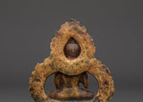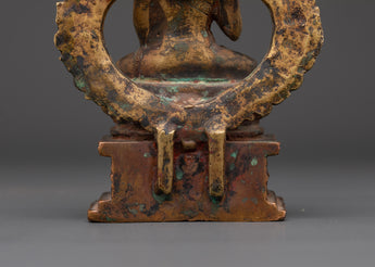 This Amogasiddhi Sculpture is an outstanding 15cm bronze statue carefully created by expert artisans. The statue depicts Amogasiddhi, the Buddha of Fearlessness and the spiritual embodiment of unwavering confidence. This bronze Tibetan Buddha, adorned with beautiful decorations, brings peacefulness and spiritual energy to your sacred space. This Himalayan artwork, perfect for meditation rooms, home altars, or as a memorable gift, radiates quiet and tranquility.