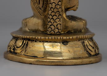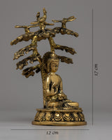 With our Amoghasiddhi Buddha Under the Bodhi Tree Statue, achieve peace and enlightenment. This exquisite brass statue, which is handcrafted with accuracy and stands 17 cm tall, is the ideal addition to your meditation or sacred space.